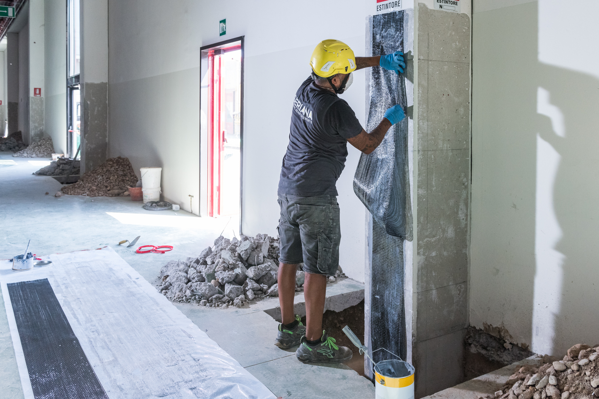 Installazione fibre di carbonioGli interventi in FRP rientrano nell’area rinforzi strutturali e affiancano i nostri servizi antisismici. Sono indicati per gli elementi strutturali quando occorre incrementare la resistenza (sismica o statica) senza introdurre irrigidimenti indesiderati.