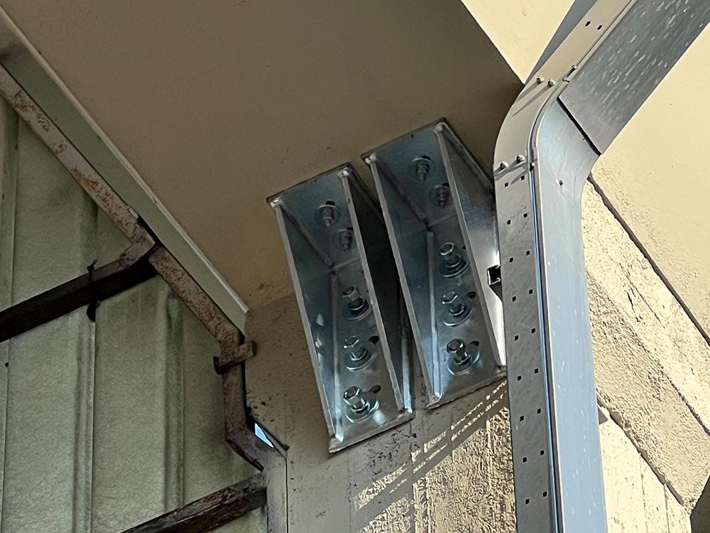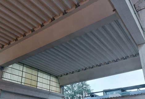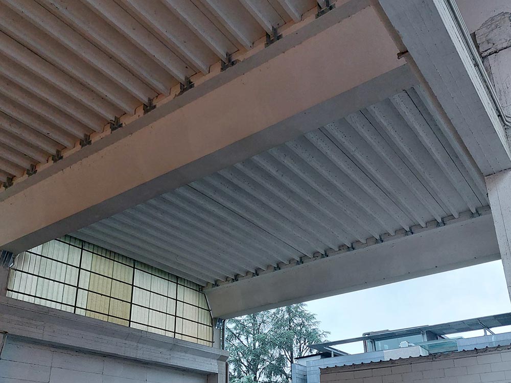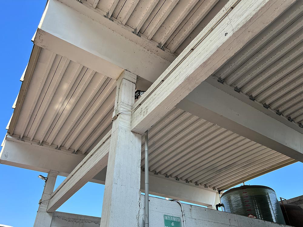 Interventi effettuati per l’adeguamento antisismico: fissaggio travi e pilastri e fissaggio tegoli su travi, fissaggio pannelli di tamponamento (contro pilastri o contro trave).
